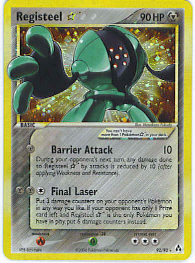[M] Barrier Attack (10) During your opponent's next turn, any damage done to Registeel * by attacks is reduced by 10 (after applying Weakness and Resistance).