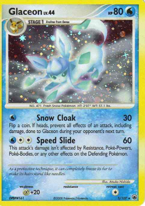 [W] Snow Cloak (30) Flip a coin. If heads, prevent all effects of an attack, including damage, done to Glaceon during your opponent's next turn.